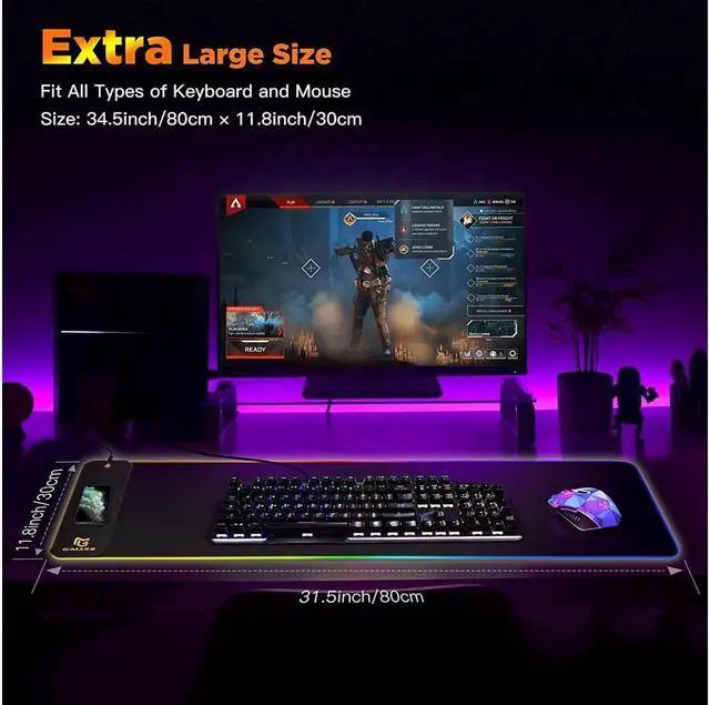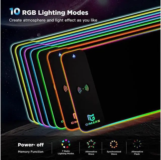 10 RGB Led Lighting ModesGIM RGB Gaming Mouse Pad has super luminous customized 10 lighting modes, including 7 static light modes and 3 dynamic modes, which offers a distinctive atmosphere when playing games or working. The memory function helps to remember your last light mode choice when switched on.