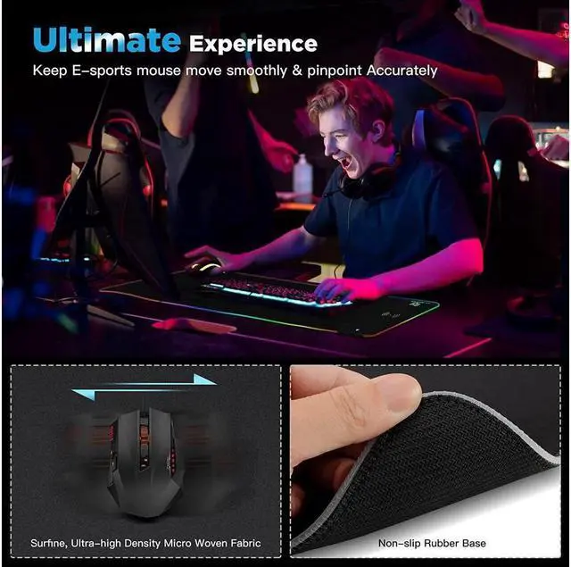 Mouse Pad for GamingOur RGB Mouse Pad offers ultra smooth surface, accurate and controllable surface. Provides the optimal surface for gaming sensors and less resistance than other mouse pads. Offers a fast and smooth tracking surface for your mouse. Raised your gaming experience to the higher level.