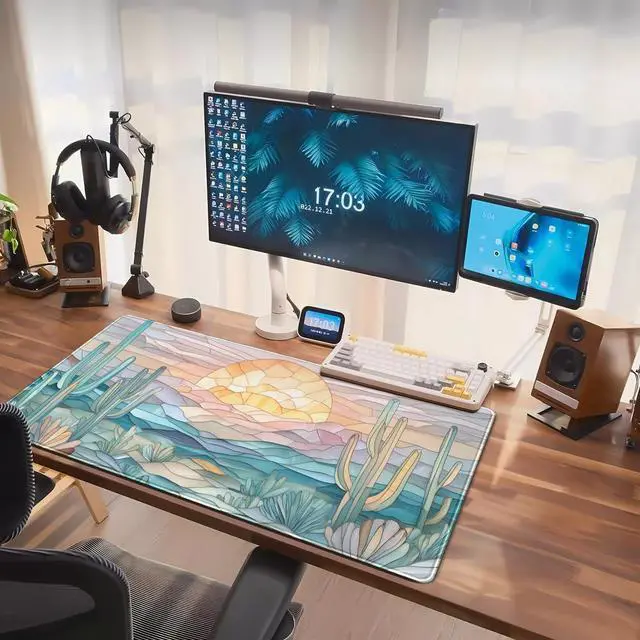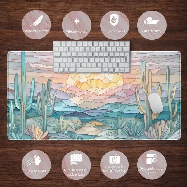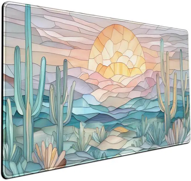 KEHIPI Desk Mat Gaming Abstract Ocean Desk Pad Large Mouse and Keyboard Pad, Faux Stained Glass Sun & Waves Mouse Mat XXL Desk Protector, Computer Mats for Desktop Sun Waves Office Decor 31.5" X 15.7"