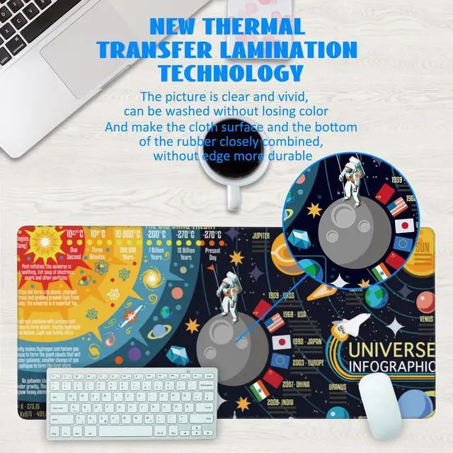 3D Solar System Galaxy Infographic Desk Mat Extended Gaming Mouse Pad Large