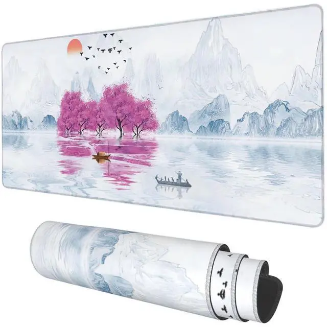 Cherry Blossom Tree Oil Ink Painting Desk Mat Extended Gaming Mouse Pad Large