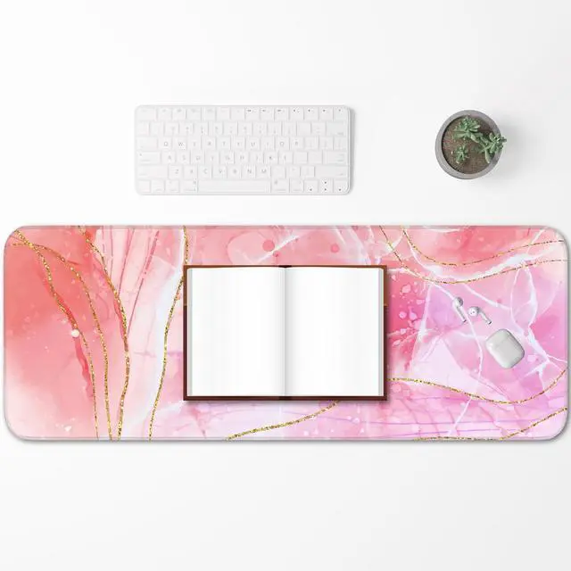 KEHIPI Pink Mouse Pad, Large Gaming Mouse Pad, Non-Slip Base and Stitched Edges, for Gaming, Home, Office, 31.5 x 11.8 Inch, Cute Desk Pad, Rose Gold Marble