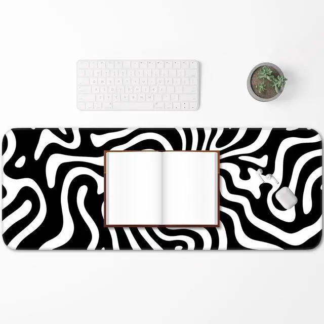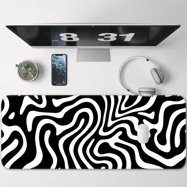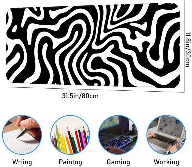 KEHIPI Gaming Mouse Pad, Non-Slip Rubber Bottom Stitched Edges, Suitable for Home, Office, Gaming, 31.5x11.8 Inch Large Mouse Pad, Black and White Abstract Waves