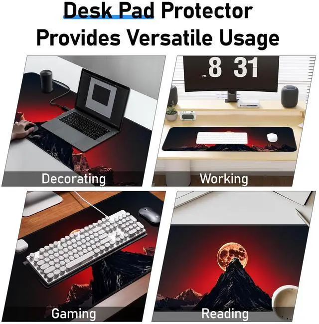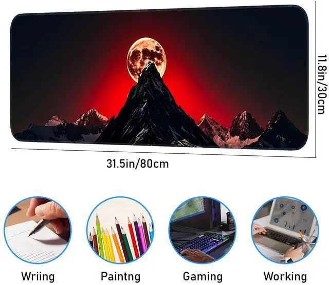SizeOur oversized mouse pad is designed for comfort and efficiency. Measuring 31.5x11.8 inches, it provides ample space to hold your mouse, keyboard, and other desktop essentials.