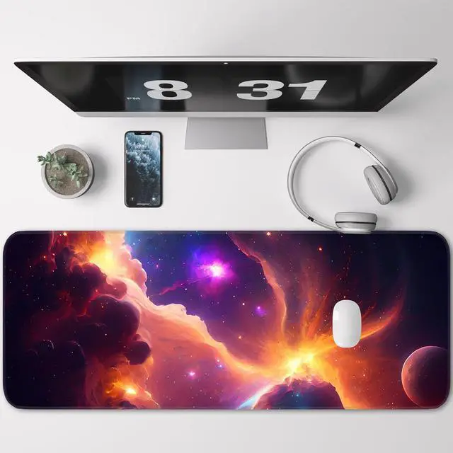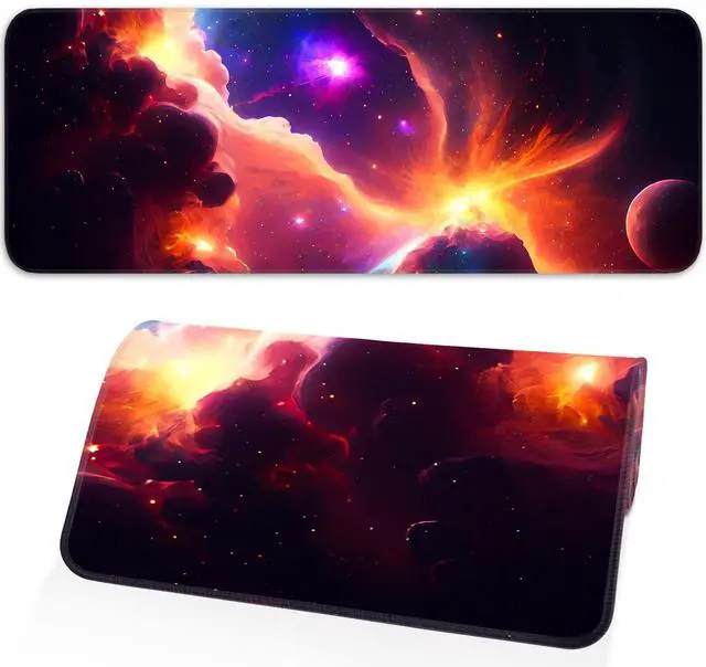 KEHIPI Gaming Mouse Pad, Galaxy Starry Sky Non-Slip Rubber Base with Seam Edge Mouse Pad, Extra Large 31.5x11.8 Inch, Suitable for Home, Office, Gaming