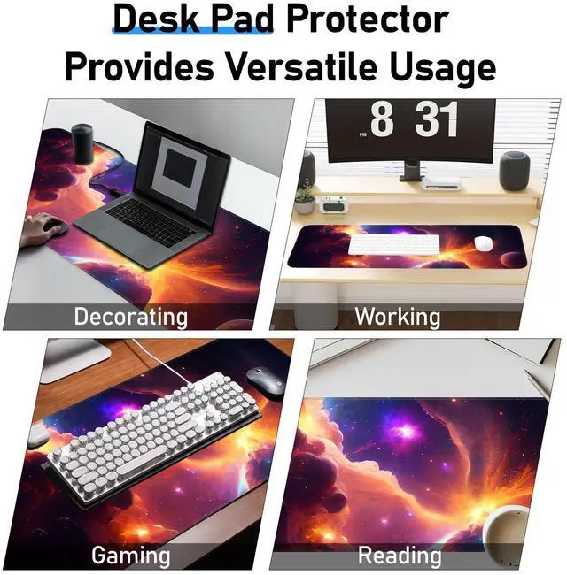 SizeThis large mouse pad measures 31.5 x 11.8 inches, which can cover the area of laptop and mouse, providing ample space for keyboard and mouse. Protect your desk at the same time, suitable for all types of mouse keyboard, etc.