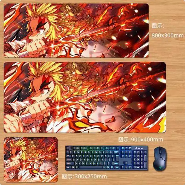 Anime Demon Slayer Rengoku Kyoujurou mouse pad Extended Gaming Mouse Pad with Stitched Edges, Large Mouse pad with Non-Slip Rubber Base for Work & Gaming, Office & Home 800*300mm
