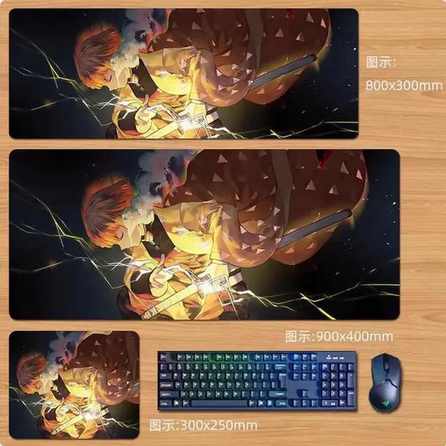 Anime Demon Slayer Agatsuma Zenitsu mouse pad Extended Gaming Mouse Pad with Stitched Edges, Large Mouse pad with Non-Slip Rubber Base for Work & Gaming, Office & Home 800*300mm