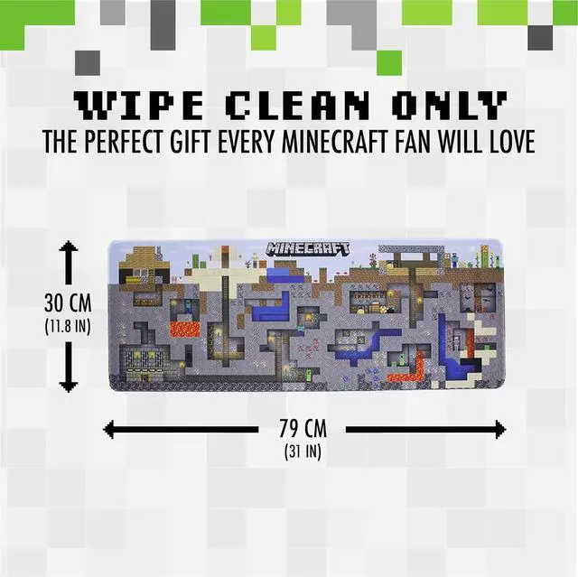REINVENT YOUR SPACE: This Minecraft desk mat is perfect for any gamer and it replaces the mouse pad minimizing clutter and maximizing the space to show off what you truly love. Use it to prevent scratches on your surfacesBRING THE WORLD OF MINECRAFT TO LIFE: This desk mat will let you bring your favorite graphics to life while lending a fancy aesthetic to your office This Minecraft mat has space for your keyboard mouse and even your laptopDIMENSIONS: Measuring 79cm (31in) by 30cm ( 11.75 in) this desk mat has room for the mouse keyboard your phone or even a laptop! It is perfect to limit scratches or coffee stains on your deskFUN
