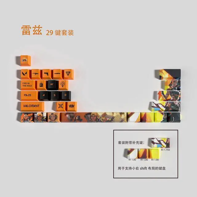 VALORANT Themed Keycaps Raze PBT heat-sublimation keycaps 29 keys OEM high degree