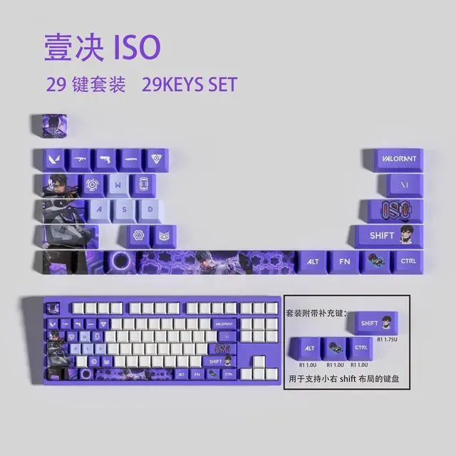 VALORANT Themed Keycaps ISO PBT heat-sublimation keycaps 29 keys OEM high degree