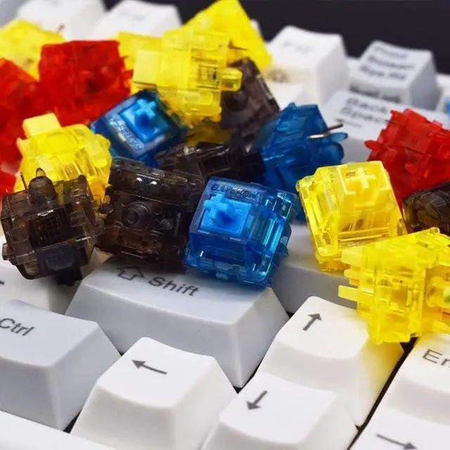[Spec]Operating Force: 60±15gf, 35pcs included in each pack, Pre Travel: 2.0±0.6mm, Total Travel: 4.0mm Max, Stem Material: POM, Top Housing Material: PC, Bottom Housing Material:Macromolecule, Spring: black-plated Spring, LED Support: Plug-In, Pins: 5-Pin