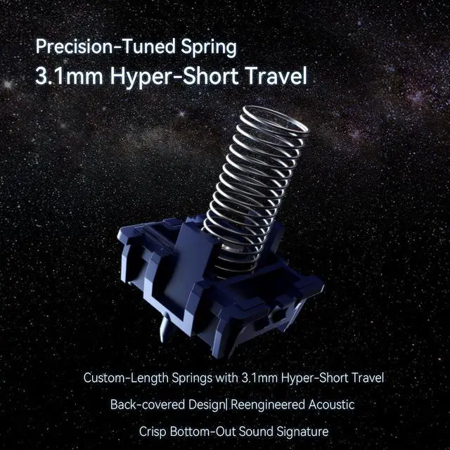 [Intro] Adjustable Travel Distance, Customizable Travel Distance Via Keyboard Driver. Factory Pre-lubed Reduce Noises Effectively, Smooth typing feel, durable and long-lasting. Keeping premium performance with 100 million keystroke.