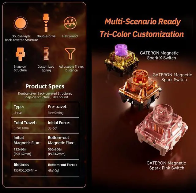 Where Innovation Meets Collective Wisdom, the first community-crafted switch made by Gateron, the Magnetic Orchid Switch. Born from gamer and switch lovers votes and forged through Gateron engineering rigour, Orchid switch merges player-driven innovation with laboratory-grade performance. Designed for elite stability and dust immunity, it delivers what competitive typists and gamers demand: zero compromises.