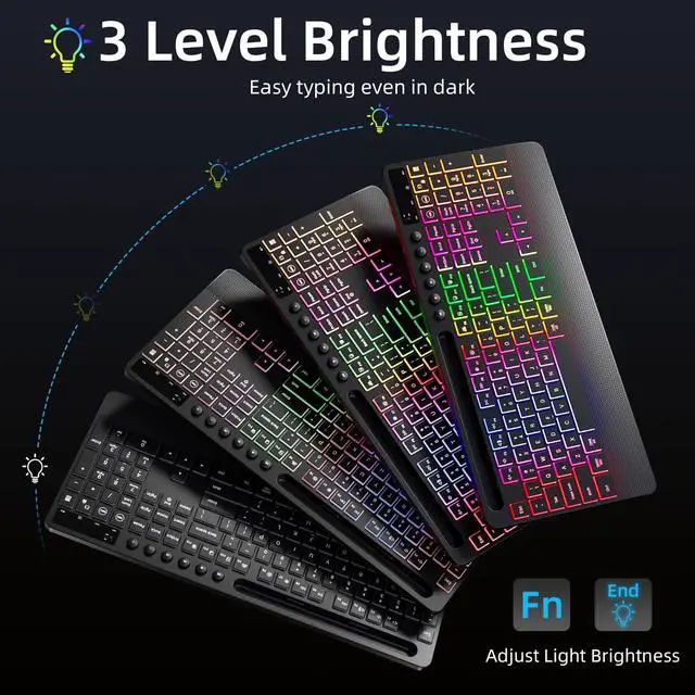 Dazzling RGB Backlit Combo:The wireless keyboard and mouse combo is ideal for late-night productivity or creating your ideal ambiance.Keyboard with 3 adjustable brightness levels ensures clear visibility in dark for night work. Mouse offers 22 dynamic lighting effects, easy to switch to show unique style