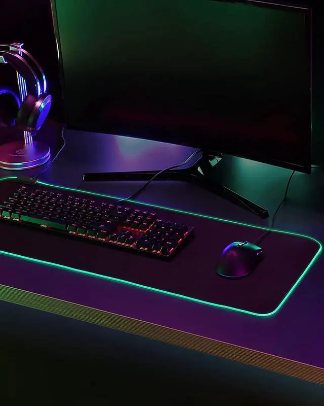Gaming Mouse Pad, XXL Large (31.5 x 11.8 x 0.16 in) RGB Mouse Mat, 7 LED Colors 10 Lighting Modes, Waterproof Fabric Surface, and Non-Slip Rubber Base for PC Laptop Keyboard
