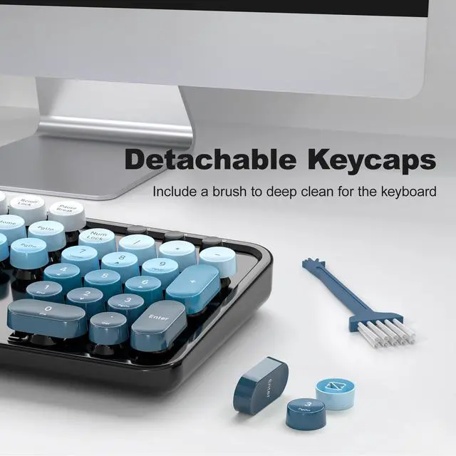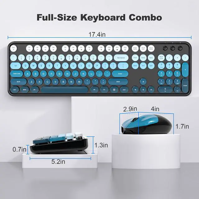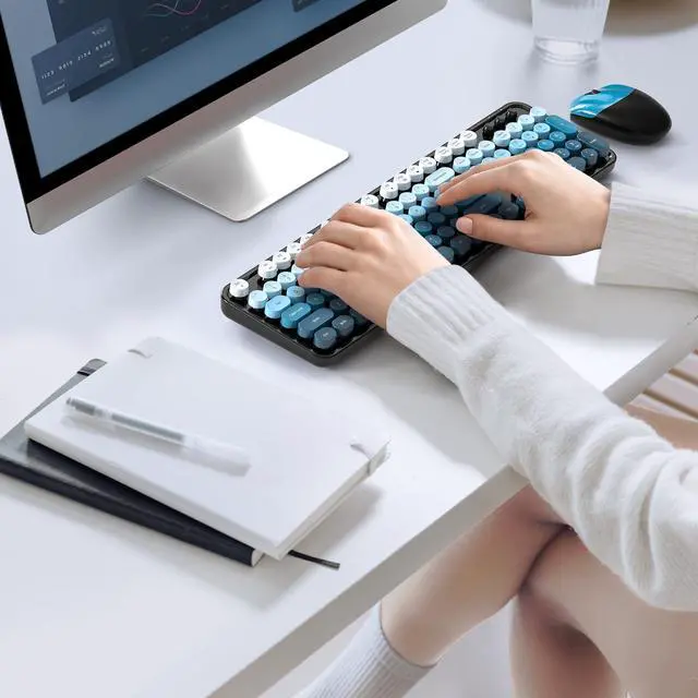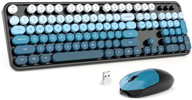 • Wireless Keyboard and Mouse: Gradient color aesthetic design retro typewriter keyboard with detachable round keycaps, and with ergonomic foldable stand and anti-slip pad ensures comfortable typing. Cool black blue wireless keyboard and mouse will become a sight to behold on your desk.