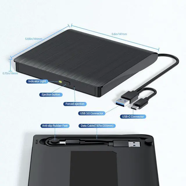 1.The Blu ray drive requires a considerable amount of power to operate, and the USB-C/Thunderbolt port of the MacBook may not provide sufficient power, especially when the drive is connected through adapters, docking stations, or hubs. So make sure the optical drive is directly connected or using an external power supply/power dock, and the dual head USB-A cable must be fully plugged in.