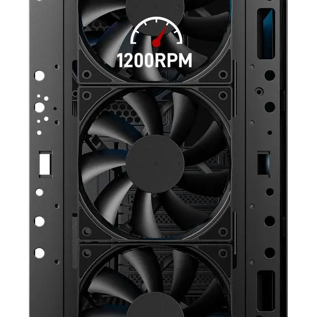 All-black fans with an all-black cases creates a coordinated aesthetic.