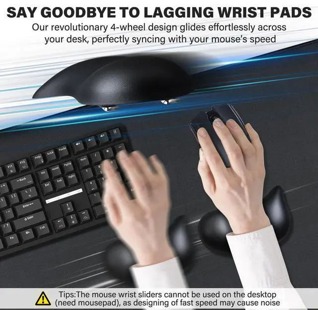 4 Smooth Rolling Wheels-Move Faster Than Ever Say goodbye to lagging wrist pads. Our revolutionary 4-wheel design glides effortlessly across your desk, perfectly syncing with your mouses speed-your wrist moves with the cursor, not against it. No more jerky stops or awkward repositioning. Just smooth, fluid motion that keeps your flow unstoppable