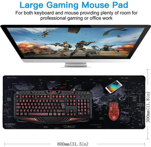 * Hosimoln non-slip smooth surface sensitive tracking, precise positioning XL gaming mouse mat. * Dimensions: L (800mm) x W (300mm) x H (2mm) * Thickness = 2 mm. * Supports a full-size keyboard with more than enough space for the mouse. * All-inclusive edge, not warp mouse pad. * Smooth, breathable, silky lycra fabric surface. Large Gaming Mouse Pad * Natural rubber safe raw materials, non-slip rubber base. * High-density fabric easy to glide. * Precise craftsmanship easy to wash. * Ideal Gift