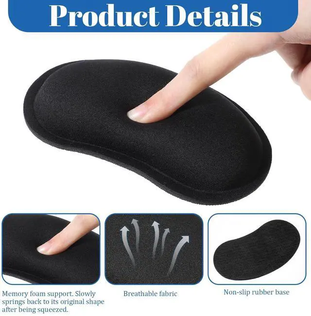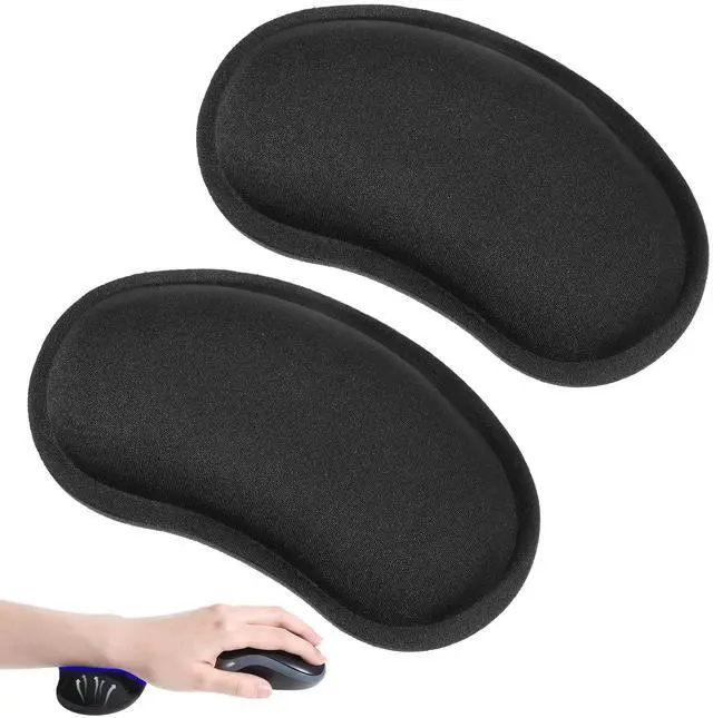 Mouse Wrist Rest Pads, 2 Pcs Ergonomic Memory Foam Support Cushion with Non-Slip Base for Computer Typing Pain Relief, Soft Wrist Support for Office, Home, Gaming - Black