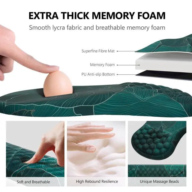 we take comfort to the next level with our Massage Design. Our desk mouse pad and keyboard wrist rest feature a unique bumpy massage bead design. This innovative feature promotes healthy blood flow and improves air circulation around your wrists, preventing discomfort during those long work sessions or intense gaming marathons. Experience a superior level of comfort that ordinary flat wrist supports simply can't match.