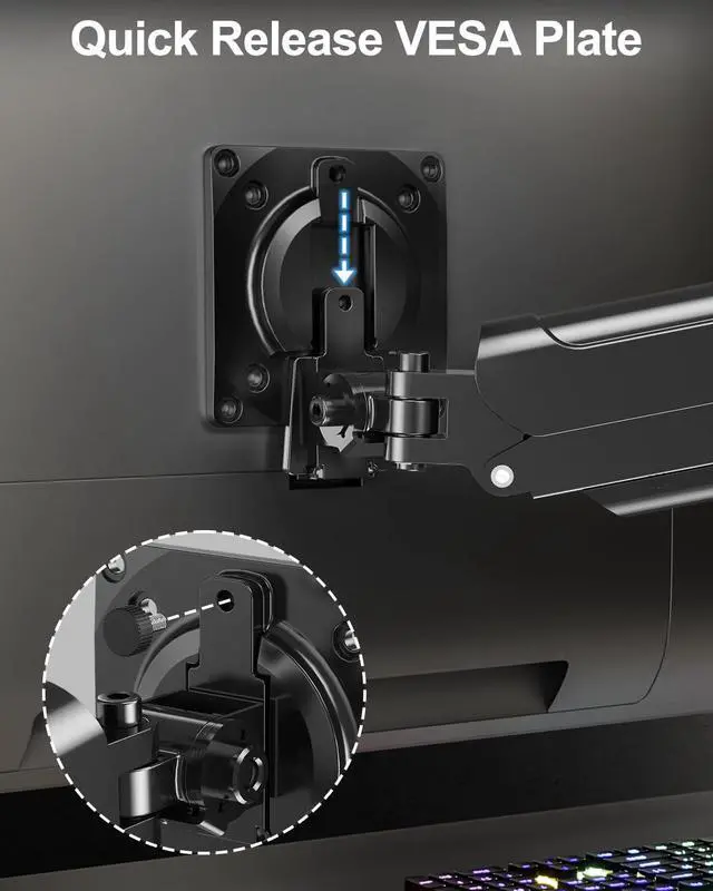Effortless and Flexible Installation : Our desk monitor mount is quick and easy to install with the included hardware and instruction manual. Unique quick release VESA plate design for easy installation. Simply attach it to the edge of your desk and adjust to your desired position in minutes