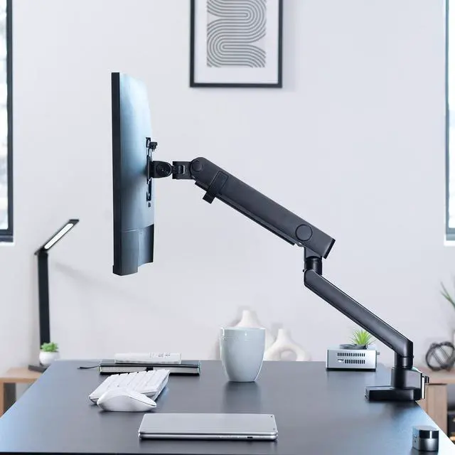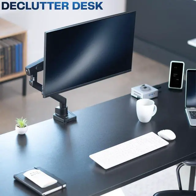 Reclaim your desk space and enjoy comfortable viewing angles! Elevate your monitor to an ergonomic height and adjust the viewing angle with just the touch of a hand! Featuring high-quality aluminum construction, flexible joints, smooth height adjustment, a sturdy desk clamp and grommet mount, integrated cable management, topside installation, and more, this mount is ready to transform your workspace.