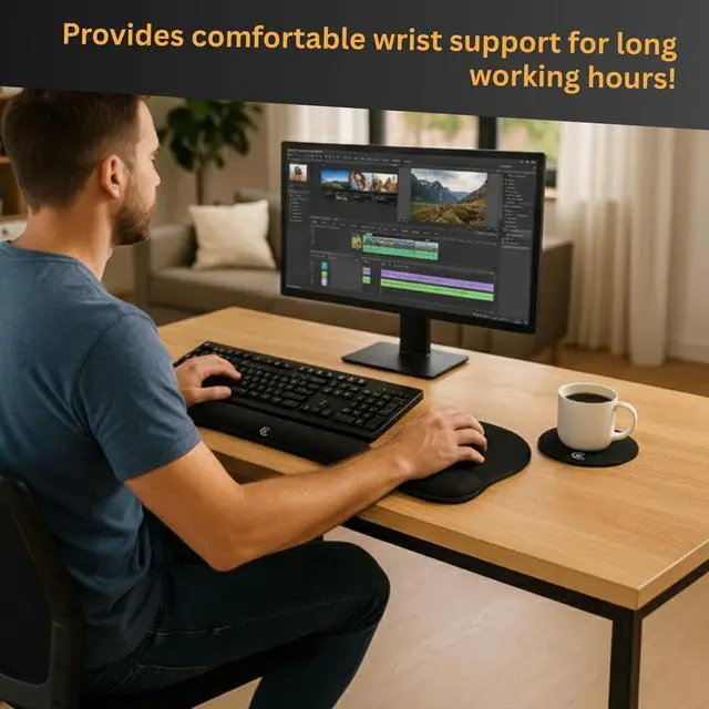 Comfortably support your wrists while typing on the keyboard and using your mouse.