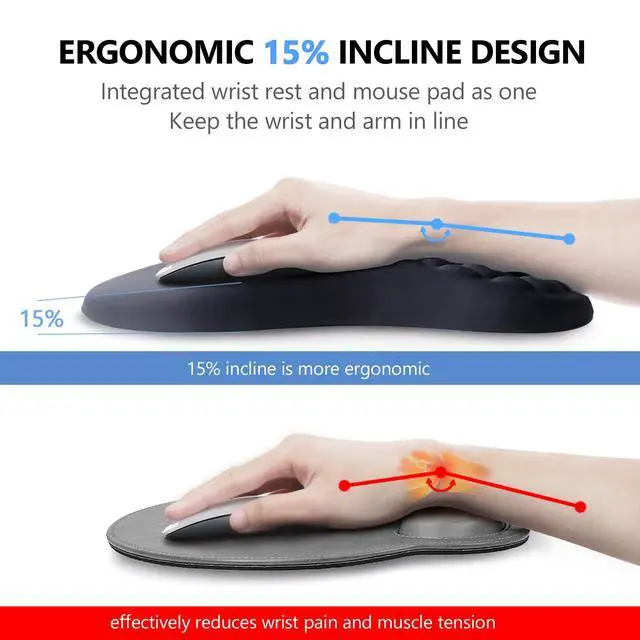 Crafted with 100% memory foam, our wrist supports are designed to provide long-lasting comfort and support that won't deform over time, unlike gel alternatives. The 15-degree slope is a game-changer, ensuring proper wrist alignment to reduce pressure and alleviate the risk of carpal tunnel pain. Whether you're a dedicated gamer, an office professional, or a creative mind, our ergonomic support system is a must-have for anyone spending extended hours at their desk.