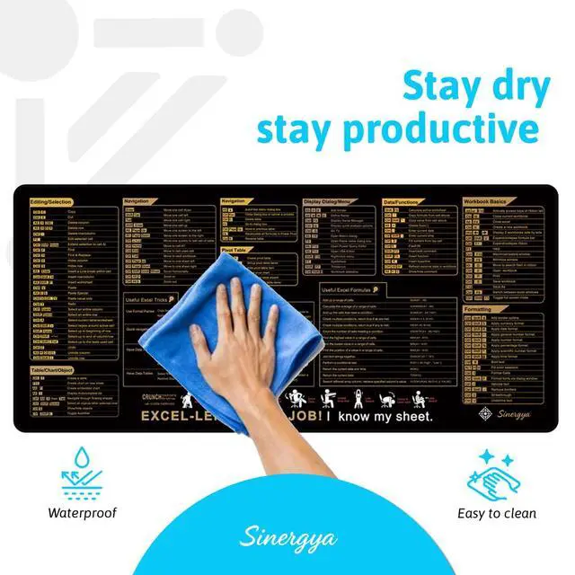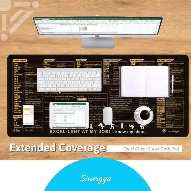 - EXCEL SHORTCUTS AT YOUR FINGERTIPS â?? Boost productivity with a full Excel cheat sheet printed directly on your desk pad. Perfect for students, accountants, data analysts, and anyone who loves efficiency.