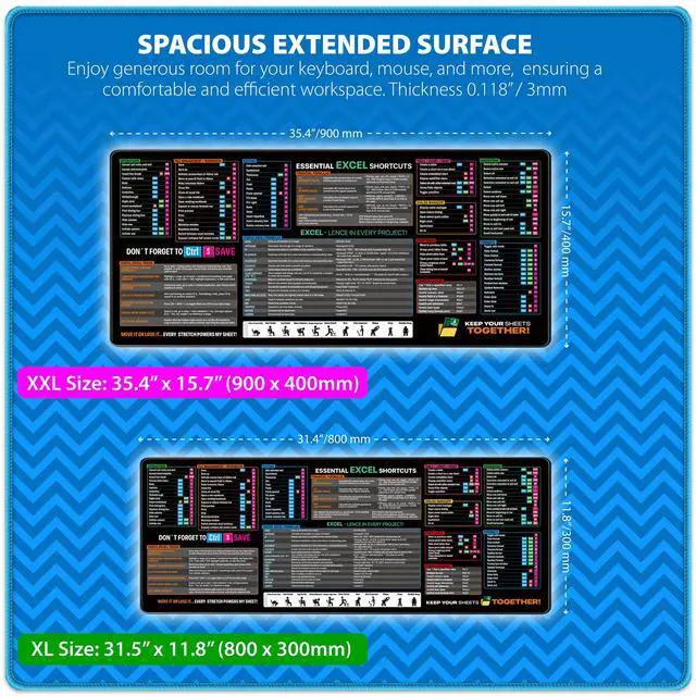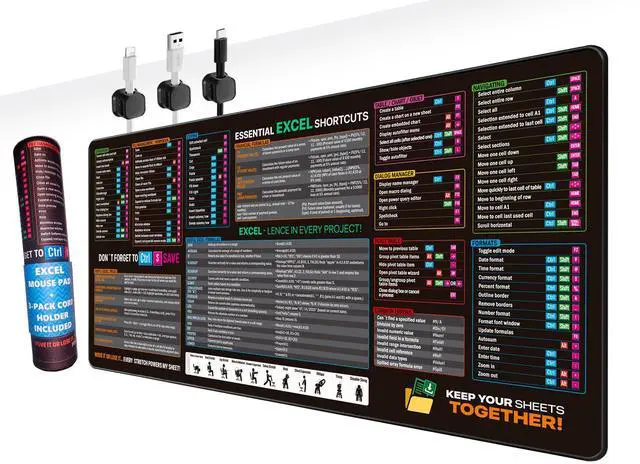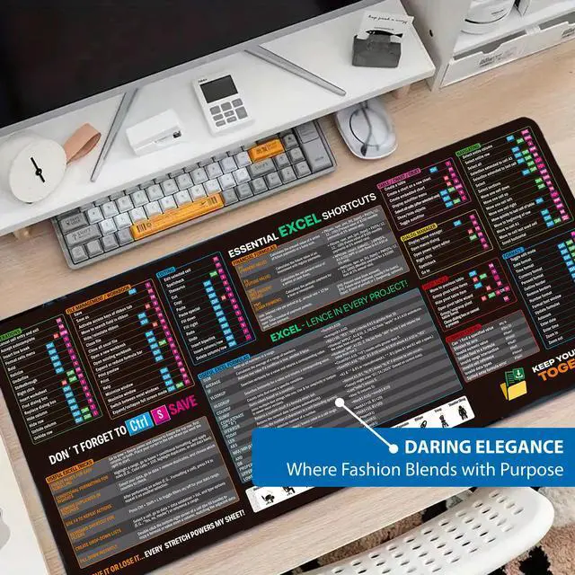 Merchant VideoTransform your desk with an Excel pad that works as an Excel desk mat and Excel mouse pad. The Excel mat for desk keeps shortcuts at hand, with a waterproof, non-slip surface perfect for work or study.