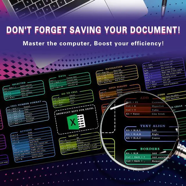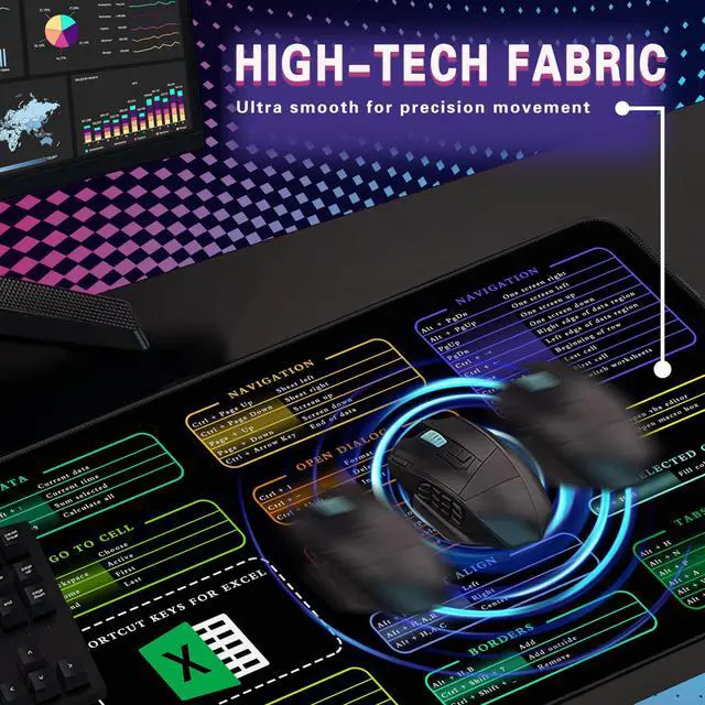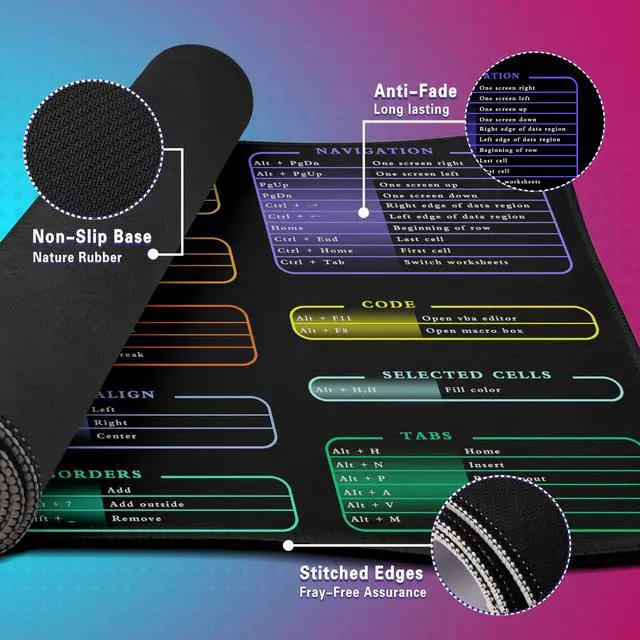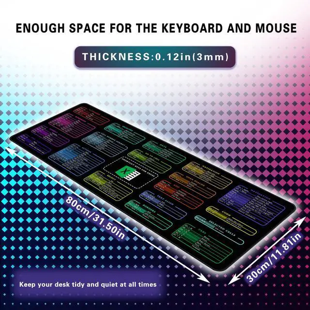 SPACIOUS DESIGN FOR EFFICIENCY: Measuring 31.5x11.8 inches (800x300x3mm), the amazing Excel Cheat Sheet mouse pad provides large and comfortable space for laptop, keyboard, and mouse, enhancing your workspace organized and tidy.