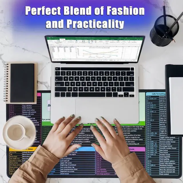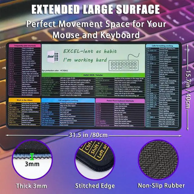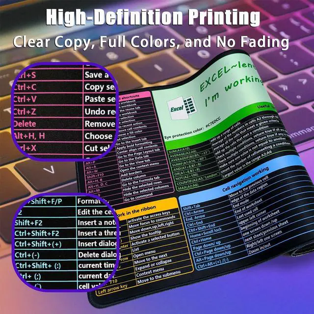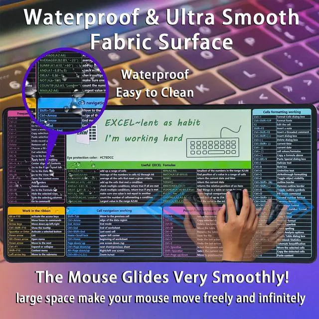 The soft and comfortable design ensures a non-slip grip, while the HD printing displays clear and conciseExcel shortcuts and formulas, making it an essential office desk accessory for boosting work efficiency.