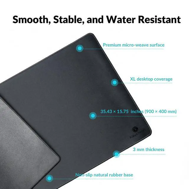 Made from premium polyester and natural rubber, this desk mat offers a generous 35.4 × 15.7 in (900 × 400 mm) surface — enough room for your keyboard, mouse, and workspace essentials.