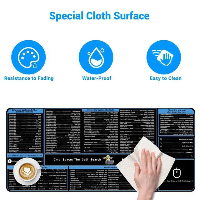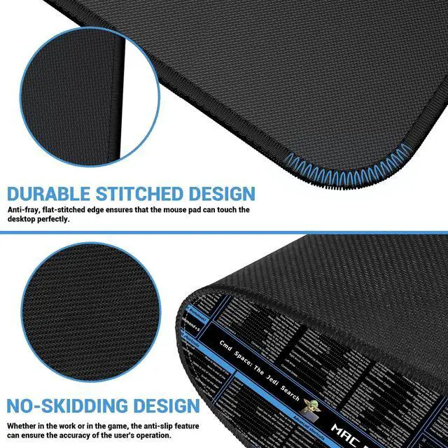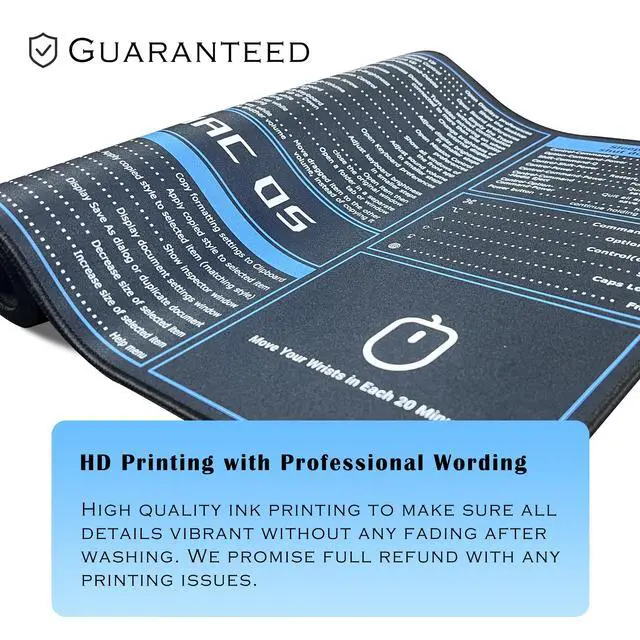 - With a bunch of MacOS shortcuts showed on the large mouse pad, the excellent MacOS desk mat will increase your work effeciency and draws all other eyes in your office!