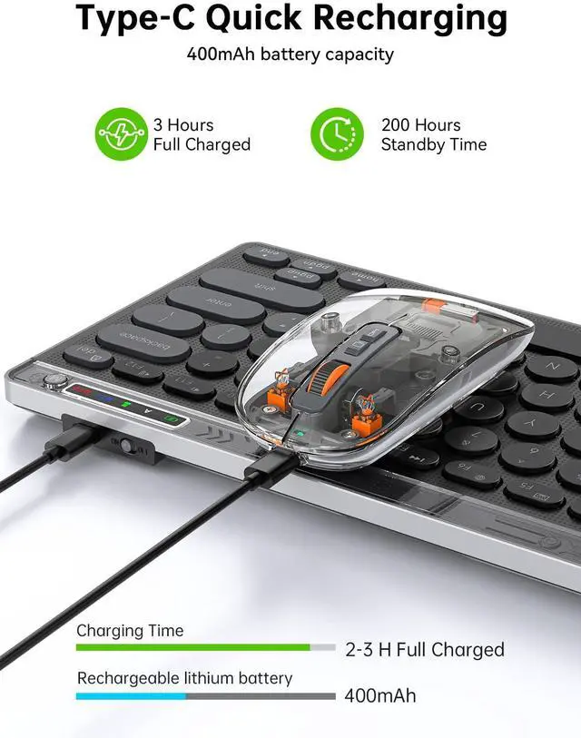 Paired with a silent transparent mouse, it makes your work smooth and efficient.