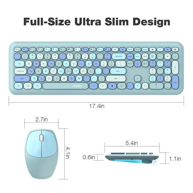 Five stylish color matching mouse and keyboard combo compatible with all kinds of PC devices and OS, such as desktop, computer, laptop, PC, Windows XP/VISTA/7/8/10, Mac and so on