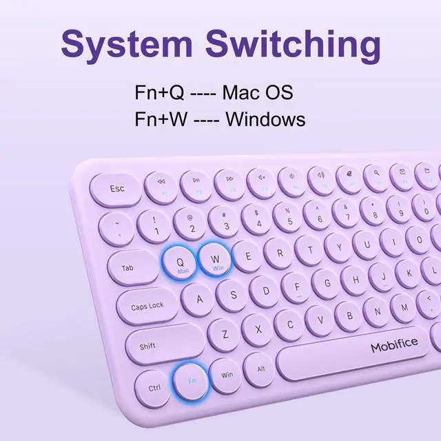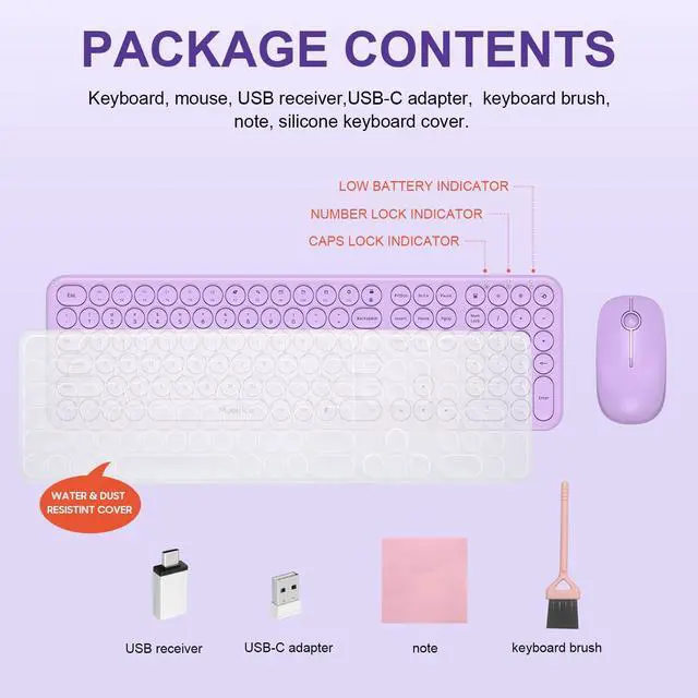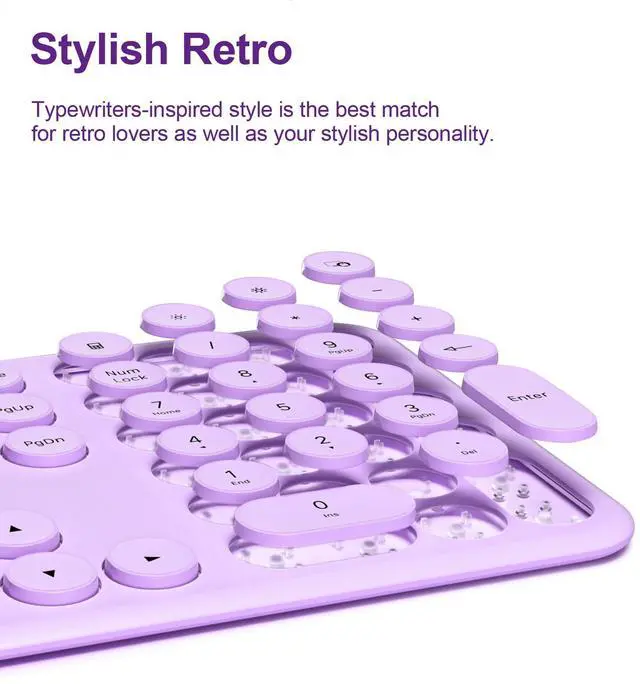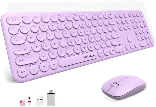 Mobifice Cute Wireless Keyboard and Mouse Combo :Slim 2.4GHz USB Cordless Full Size Silent Retro Keyboard and Mouse Set for PC Computer,Laptop,Windows,Mac,Tablets(Upgraded Violet)