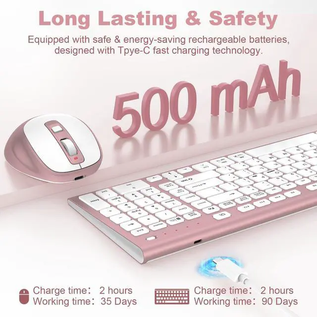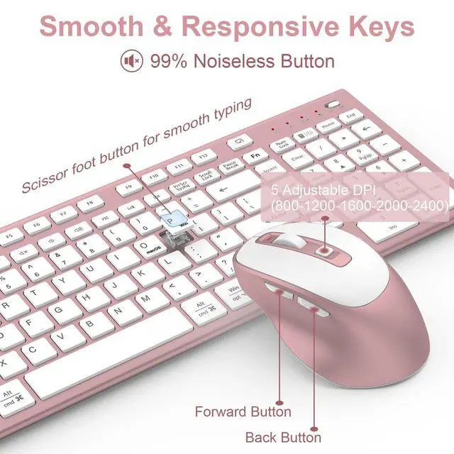 - [Advanced Wireless Tech with 33ft Range for Uncluttered Freedom] Equipped with the latest wireless chip for a stable connection up to 33 feet (10m). Plug and play; simply connect with a USB receiver (Type-C port devices can be converted to USBC via the included adapter). Say goodbye to cable clutter and choose cordless long-distance connectivity. The Alt/Cmd dual-print layout is perfectly compatible with Mac, iMac, Macbook, and Windows systems.