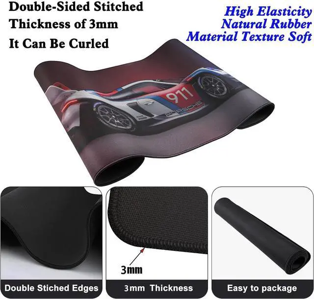 This mouse pad measures 31.5 inches in length, 11.8 inches in width, and 0.12 inches in thickness, providing ample space for both mouse movement and keyboard placement.