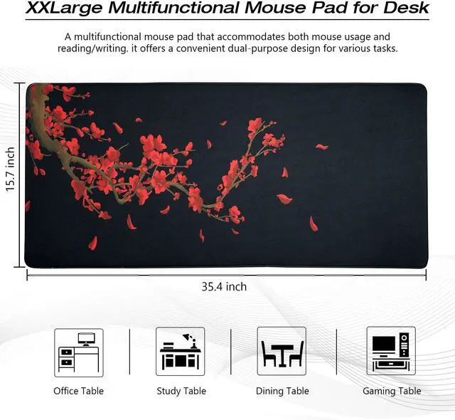 XXL Mouse Pad: measuring at 35.4*15.7 inches.extended desk pad which is large enough to fit a full-sized keyboard and mouse,providing plenty of space for gaming or office work.