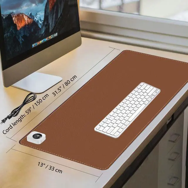 Heated Desk Pad Mouse Pad - Heated Desk Mat - Warm Desk Pad - 3 Levels Heating & 4 Hours Auto Shut-Off, PU Leather Mouse Pad - 31.5 x 13 inch (Brown)