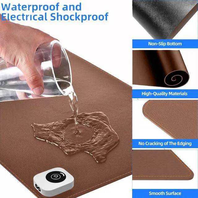 The power control panel and PU leather waterproof design of the heated desk mat.