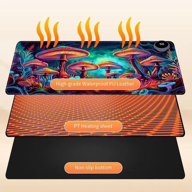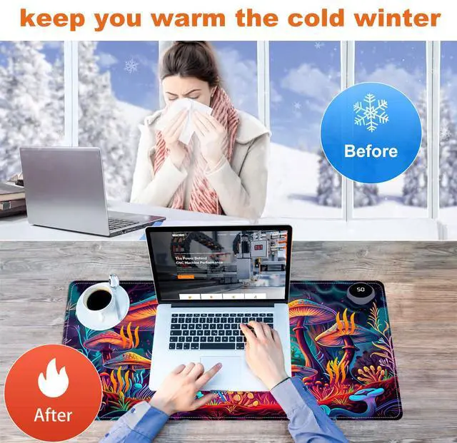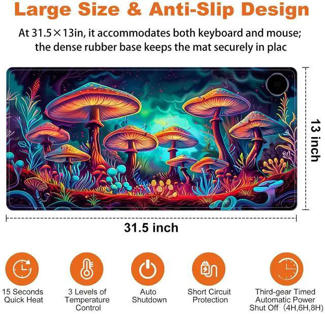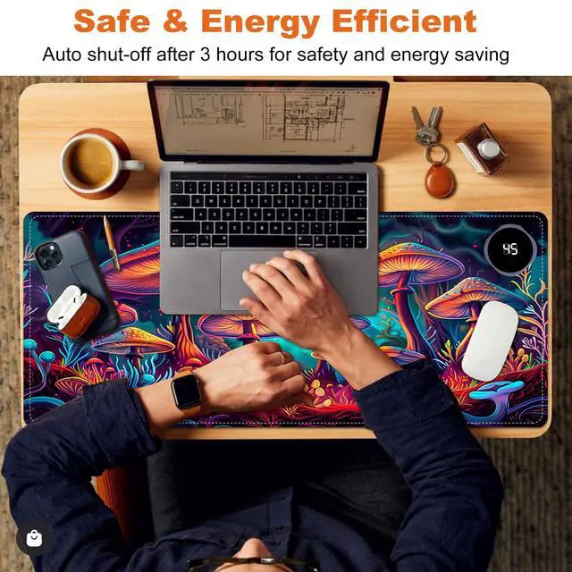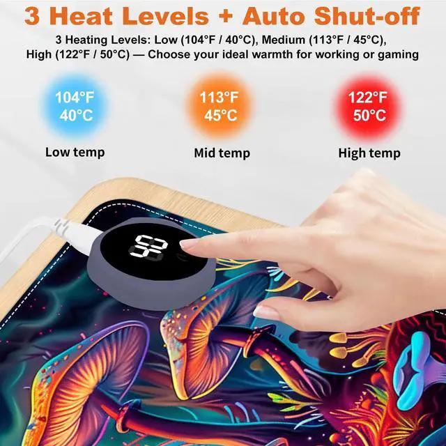 Stay warm and productive during the cold months with this large 31.5" x 13" Heated Mouse Pad. Featuring 3 adjustable heat levels (104°F / 113°F / 122°F), it delivers consistent warmth for your hands and wrists while working or gaming. Made from premium PU leather, the surface is waterproof, easy to clean, and comfortable to the touch. Unlike USB-powered models, this desk mat uses a plug-in electric power source for faster and more stable heating. An automatic 3-hour shut-off timer ensures safety and energy efficiency. The mat is rollable and portable, making it ideal for both office and remote workspaces. Designed with a non-slip backing for stability and a modern aesthetic, this heating mouse pad is the perfect winter accessory to upgrade your desk setup.