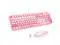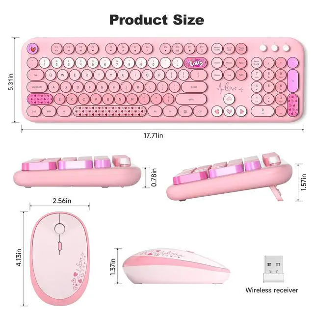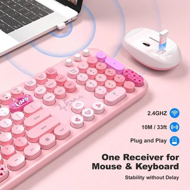 Wireless Keyboard and Mouse Combo, Full Size 2.4G Plug and Play Typewriter Retro Round Computer Keyboard and Mouse Set for Windows, Computer, Desktop, PC, Notebook - (Pink Colorful)
