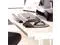 A single or dual monitor arm with a copyyholder to reduce eye and neck strain.