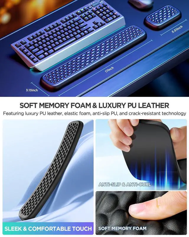 Boost your daily productivity and comfort with our keyboard and mouse wrist rest. Its flat, anti-slip PU base keeps it securely in place, ensuring stability while you type or click. The reinforced edges prevent cracking and rolling, making it durable and reliable all year round