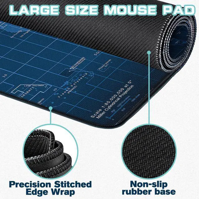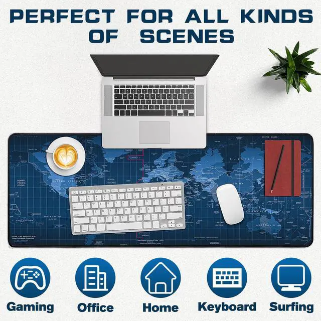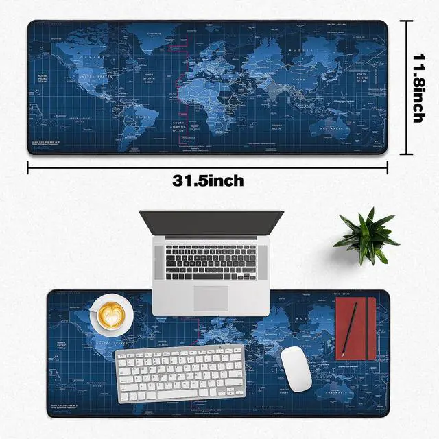 Mouse Pad Gaming - Desk Mat for Keyboard and Mouse - World Map Large Mouse Pads for Desk, Gaming Mousepad with Non-Slip Base, Desks Pad (31.5" X 11.8") for Game, Office and Home (Map)